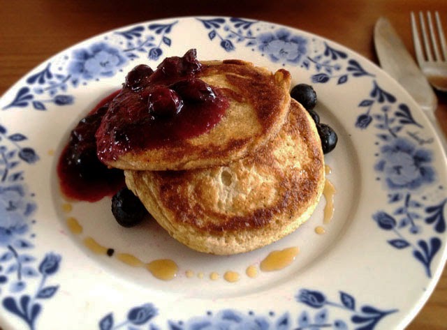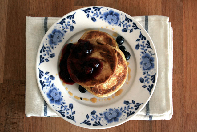 Deze blueberry pancakes at ik een paar jaar geleden bij mijn favoriete cafeetje in Berlijn. Toen ik vorige maand weer in Berlijn was, stonden ze nog steeds op de kaart. Ik kon mijn geluk niet op en bestelde weer een extra grote portie pancakes.