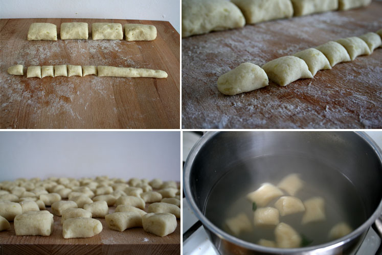 Op het gebied van gnocchi was ik tot op heden behoorlijk onervaren. Neem nou de uitspraak. Met mijn 'gnotshi' dacht ik altijd redelijk Italiaans uit de hoek te komen (die ober in Toscane zal wel gedacht hebben...), maar je spreekt het uit als 'njoki' (dus nee, ook niet als 'gnokki'). Ook mijn verdere gnocchi-ervaringen zijn minimaal. Ik heb ze wel eens kant-en-klaar bij de supermarkt gehaald. Ook op tv heb ik een keer een uitgebreide 'zo-maak-je-gnocchi-documentaire' voorbij zien komen (wat er overigens altijd erg spectaculair uit zag), maar in real life had ik ze nog nooit gemaakt. Dit recept leek me dus wel een uitdaging.