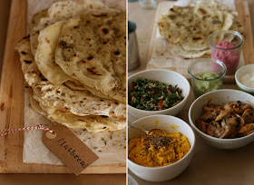 Bijna alle recepten heb ik 's middags of de dag ervoor al gemaakt. De receptuur is ontzettend makkelijk. Bij ieder recept staat duidelijk aangegeven hoeveel tijd je kwijt bent. 's Avonds hoefde ik alleen nog de bruidssoep op te warmen en de eieren en spinazie bij de Marokkaanse tomatensaus te doen. Voor het platbrood was ik een beetje bang, omdat ik broodbakken altijd zo'n gedoe vind met kneden, maar zelfs dit recept was zo klaar.
