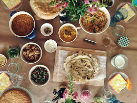 Een mooi gedekte tafel vol met eten, glazen en bloemen vind ik er zo gezellig uitzien. Ik moet zeggen dat ik niet had verwacht dat alles zóóó lekker zou zijn. Doordat je veel verse kruiden en specerijen gebruikt, smaken de gerechten heel puur. De Marokkaanse eieren en het platbrood met worteldip deden het goed, maar de Turkse bruidssoep was favoriet. Deze stevige soep met munt en citroen was ontzettend lekker. Ik kan me voorstellen dat je er als bruid met zo'n soep de hele dag tegenaan kunt. De zelfgemaakte limoncello met sinaasappelcake maakten de avond af.