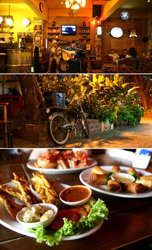 Na een kookcursus Thais (lees hier uitgebreid verslag, echt een aanrader!) en jungletocht sliepen we nog een paar dagen in een hotel in het centrum van Chiang Mai. Het centrum ligt binnen de oude stadsmuren. Leuk is om een fiets te huren en langs de oude stadswal te fietsen. In Ratchapakinai Road vind je alleen maar leuke restaurantjes en plekken waar je heerlijk kunt eten. De volgende plekken vind je allemaal in deze straat. Voor de lekkerste mojito ga je naar Rose Restaurant of drink een cocktail op straat bij de Cocktail Car (hier zijn ze totaal niet zuinig met de alcohol). Deze kar vind je ook in deze straat en wordt iedere avond opgebouwd vanaf een uur of zeven.