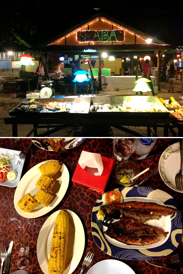 De laatste paar dagen verbleven we in het wat meer toeristische deel van het eiland aan White Sand Beach. De Westerse invloed is goed te merken aan "fries war" of "fries barber" en "Gouda cheese". Gelukkig vind je verderop aan het strand veel leuke eettentjes waar je onder bomen vol met lampionnen op het strand de lekkerste vis eet. Uitgestald in een boot liggen borden vol vis met een prijskaartje, je hoeft het alleen aan te wijzen en ze bereiden het ter plekke op de barbecue. Ik heb volgens mij nog nooit zulke lekkere vis gegeten. In Nederland is net gevangen vis vaak niet te betalen, dus neem een bord vol coquilles of rivierkreeftjes voor maar een paar euro. Leuke terrassen op het strand zijn Sabay Bar (hier moet je echt de coquilles nemen!), Seabar en 15 Palms (ga hierheen voor een lekker ontbijt).