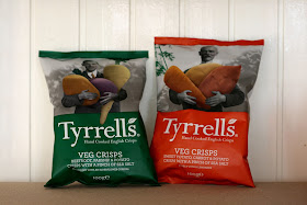 Groentechips. Tyrrells heeft naast hun al bestaande fancy smaken sinds kort een nieuw soort chips in het assortiment: groentechips. Voor degenen die zich te chique voelen voor aardappelchips heeft Tyrrells iets nieuws bedacht: chips van knollige groentes. Voor de echte fijnproever. Ze hebben twee soorten: de groene zak is groentechips van bieten, pastinaak en aardappel. Excelent with an elderflower cordial. In de oranje zak vind je chips gemaakt van zoete aardappel, wortel en aardappel. Deze variant is lovely with lemonade.