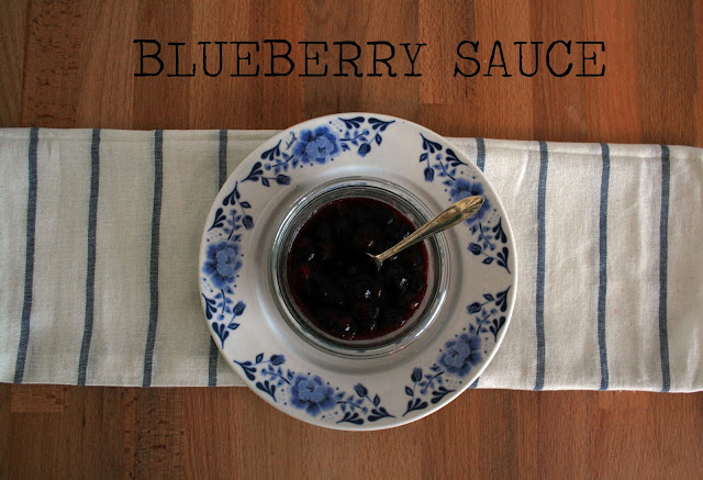 Zet 60 ml water in een pannetje op het vuur. Doe hier 300 gram blauwe bessen, 2 el citroensap en 2 el suiker bij. Breng aan de kook. Laat alles ongeveer 10 minuutjes zachtjes pruttelen zodat de saus wat indikt en de bessen open spatten.