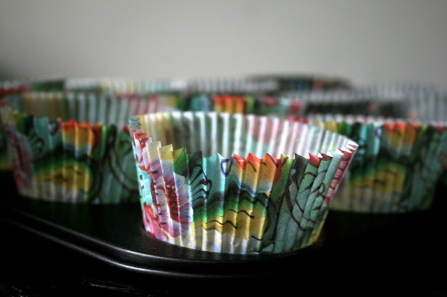 Zet een cupcake bakblik met daarin papieren bakvormpjes klaar. Door het cupcake bakblik te gebruiken blijven de cakejes mooier in vorm, maar het kan ook zonder bakblik.