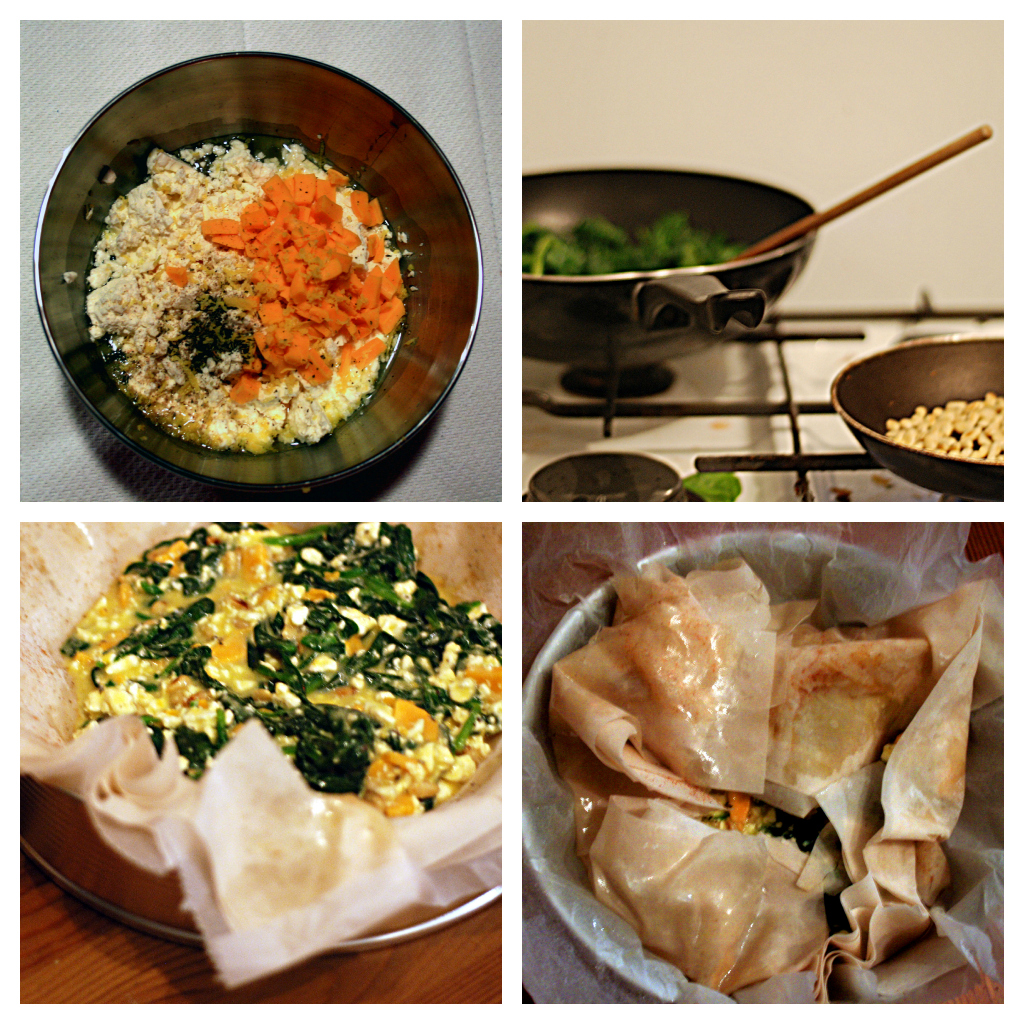 Hier dus mijn versie van Jamie's filodeegtaart met spinazie en feta.