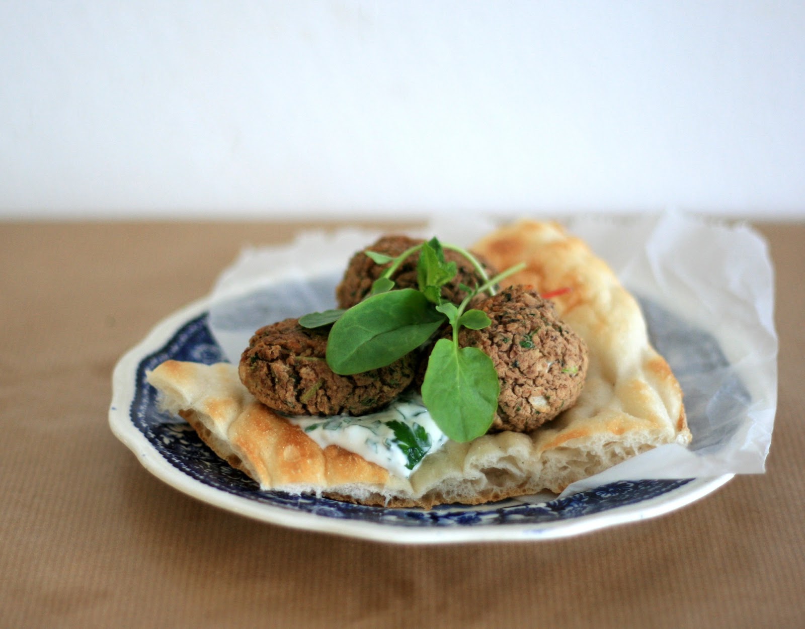 Ik at ze met plat brood en zelfgemaakte knoflooksaus. Knoflooksaus kun je snel in elkaar flansen van wat nog in de koelkast staat. Ik maakte 'm van twee lepels Griekse yoghurt, een lepel ricotta en wat roeryoghurt met een teentje knoflook en gehakte peterselie.