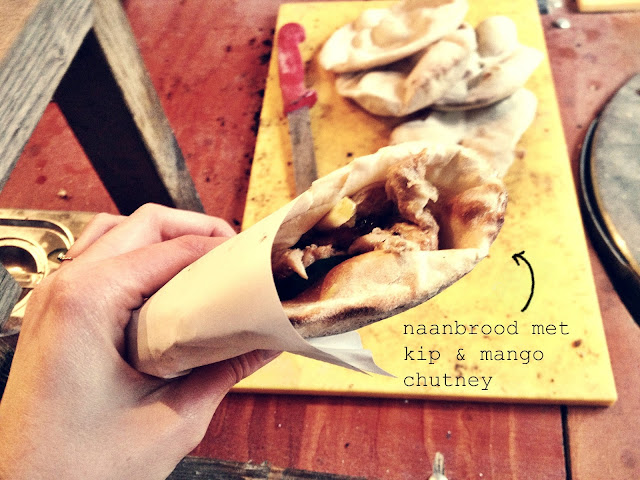 Het naanbrood werd ter plekke vers bereid in een grote ton met vuur. Dit was zo lekker, dat ik het thuis ook heb gemaakt (helaas niet met zelfgemaakt naanbrood, maar toch). Hieronder het recept voor naanbrood met kip tandoori, mangochutney en komkommer. Super simpel en zo gemaakt. Echt heel lekker.