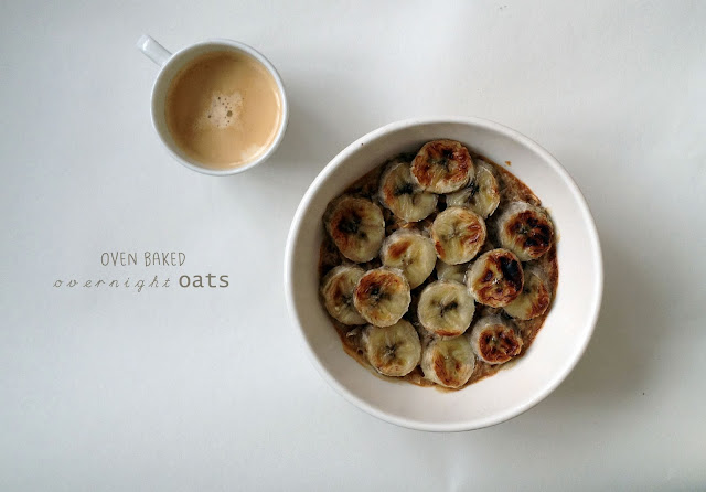 Mijn ontbijt is niet altijd zo overdacht geweest als de laatste tijd. Alweer even geleden ruilde ik mijn bak met voorgefabriceerde cruesli in voor smoothies, kwark met zelfgemaakte granola en havermout. Het lijkt misschien meer werk, maar deze ontbijtjes heb je zo gemaakt. Het verschil zit 'm erin dat ik nu tot de lunch vol zit, terwijl ik voorheen na twee uur alweer trek begon te krijgen. Het ontbijt zet de toon voor de dag. Daarom deze super lekkere overnight oats met banaan uit de oven.