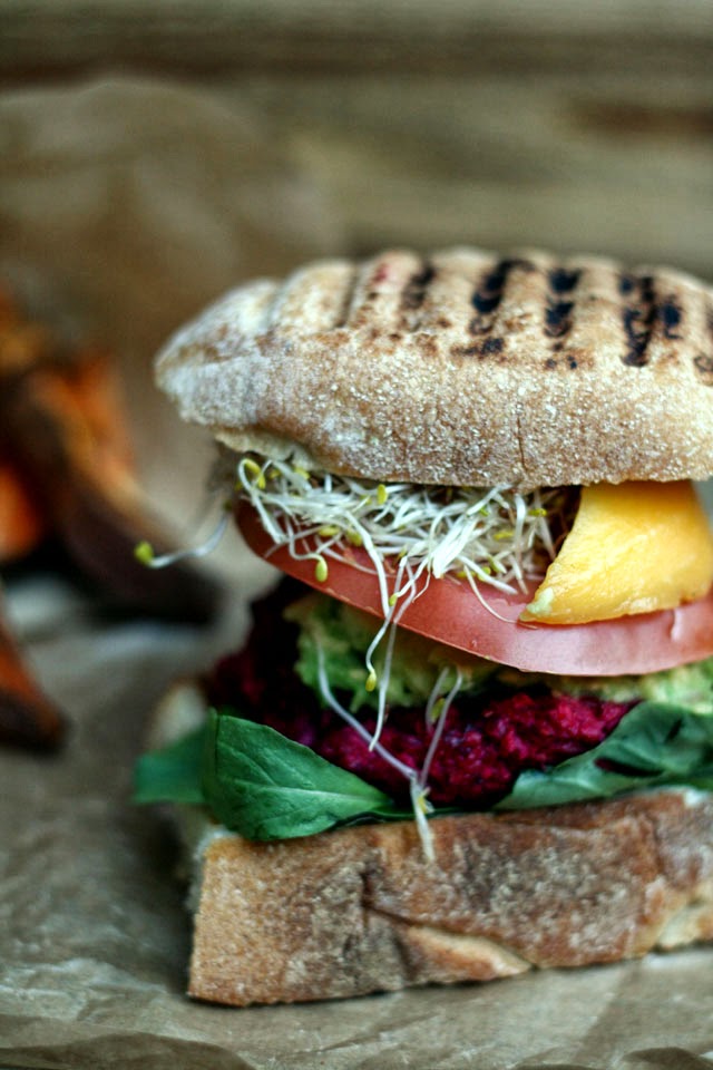 Ik eet graag burgers: dik belegd met een opeenstapeling aan toppings. Dat je eerste gedachte is hoe je het broodje in hemelsnaam naar binnen gaat werken. Deze bietenburger met feta en havermout is echt epic. The veggie burger of my dreams. De bieten geven deze burger bijna een soort vleesachtig voorkomen en ze hebben enorm veel smaak, aards en een beetje zoetig tegelijk. Zelfs mijn vader, die niet beter wist dan dat burgers van vlees worden gemaakt, vond deze burger onweerstaanbaar.